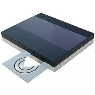 The CD tray was very solid and elegant and the loading mechanism extremely durable. The tray was made from a 4mm thick sheet of aluminium and the conical recess for the CD was milled and diamond polished to the smallest of tolerances – to prevent dust gathering in the recess. The circular rubber profile protected the disc during loading and unloading, while the triangular cut-out facilitated unloading. To avoid static build-up the tray was connected to ground and to avoid ‘ringing’, a damping plate was placed at the innermost part of the tray, inside the cabinet.