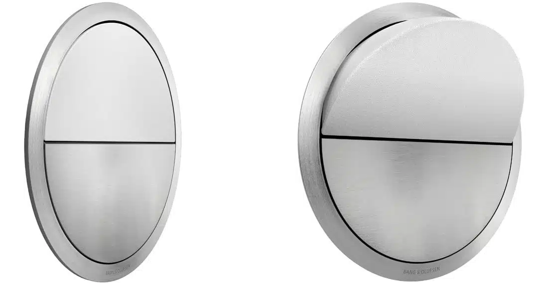 The BeoLab 15 unit houses treble, midrange and a motorised tilt mechanism, which activates when your music starts to play, that is, it has an inner speaker cabinet which pivots from its mounting so you can adjust the direction of sound to your precise needs.