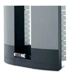 BeoLab 2000 is a flexible Beolink loudspeaker which is easy to accommodate and gives you the option of hands-on or remote control. On the front panel you choose between CD, tape or radio, turn on & off, up & down. A bracket for wall or corner mounting is included
