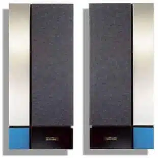 The elegant, flat panel loudspeakers were created to hang on the wall. And with their calm surfaces of blue or grey fabric coupled with polished steel, they could be taken for works of art. But the design was only partly for visual effect. The form of the panel speakers was founded on an advanced, acoustic principle that uses the wall as an active part of the sound reproduction process โ without causing the wall itself to vibrate.