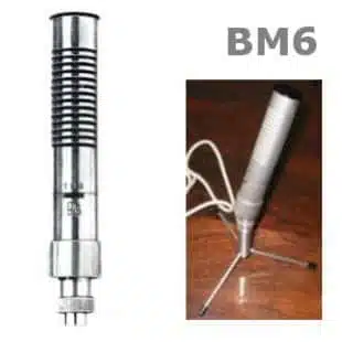BM6 was a pressure-gradient ribbon microphone with full-frequency range, perfect figure-eight directional characteristic and a 3-position switch for speech, music and off. It had an international standard plug (DIN) and 150-ohm impedance – the internationally-accepted impedance for dynamic microphones in recording studios. Adding the BM7 microphone converted the BM6 into the BM5 mono/stereo microphone which could be use for stereo recordings according to the MS or AB method as desired.